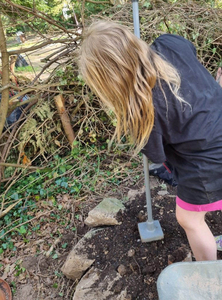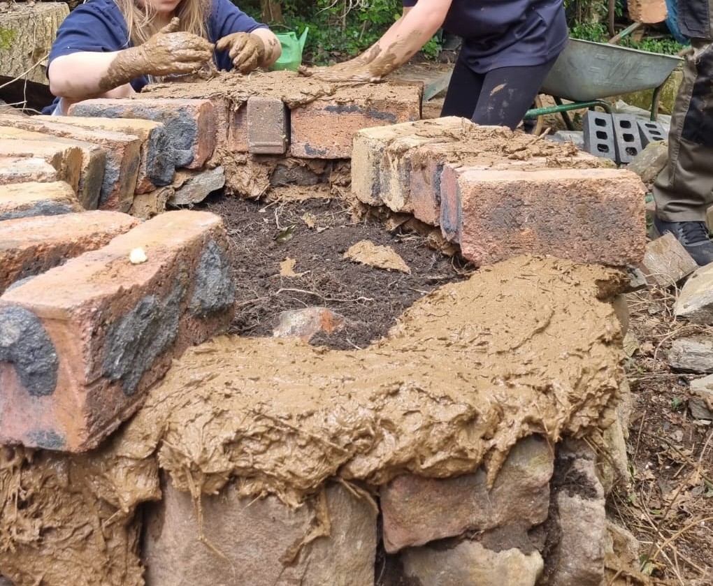A delightful project, inspired by a creative kid, and taken forward with joy and hard work. We have salvaged what we can in the way of building materials, and have dug some clay from the garden. We’ve had thoughtful conversations about designing the oven to do its job and to work for all the different sizes of human who might want to use it – and about how to find the (approximate) centre of an (approximate) circle using a piece of string!